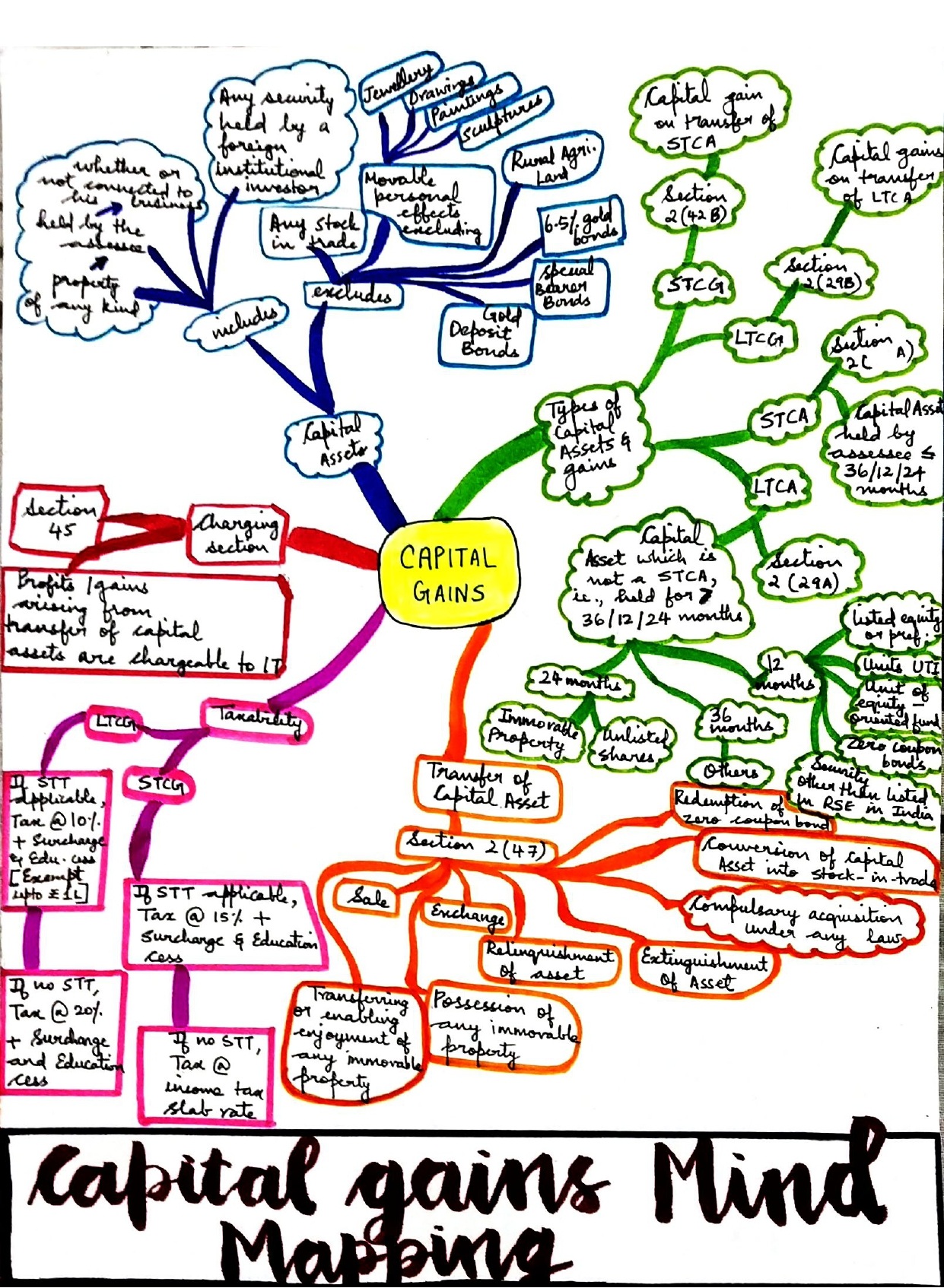 Even though I always prefer to make my notes by hand, there are many people who prefer the digital mode. I have shown below an example of a mind map I made while studying for Direct Tax.