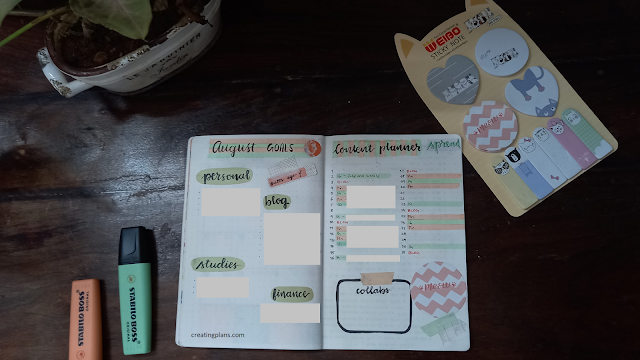 I have never before made a goals spread, but I realize that monthly goals can actually drive you to focus better. So I incorporated this spread. Let’s see during the month end review how far I’ve come. I used scrap paper to cut out some oval shapes for the goal sub headings.