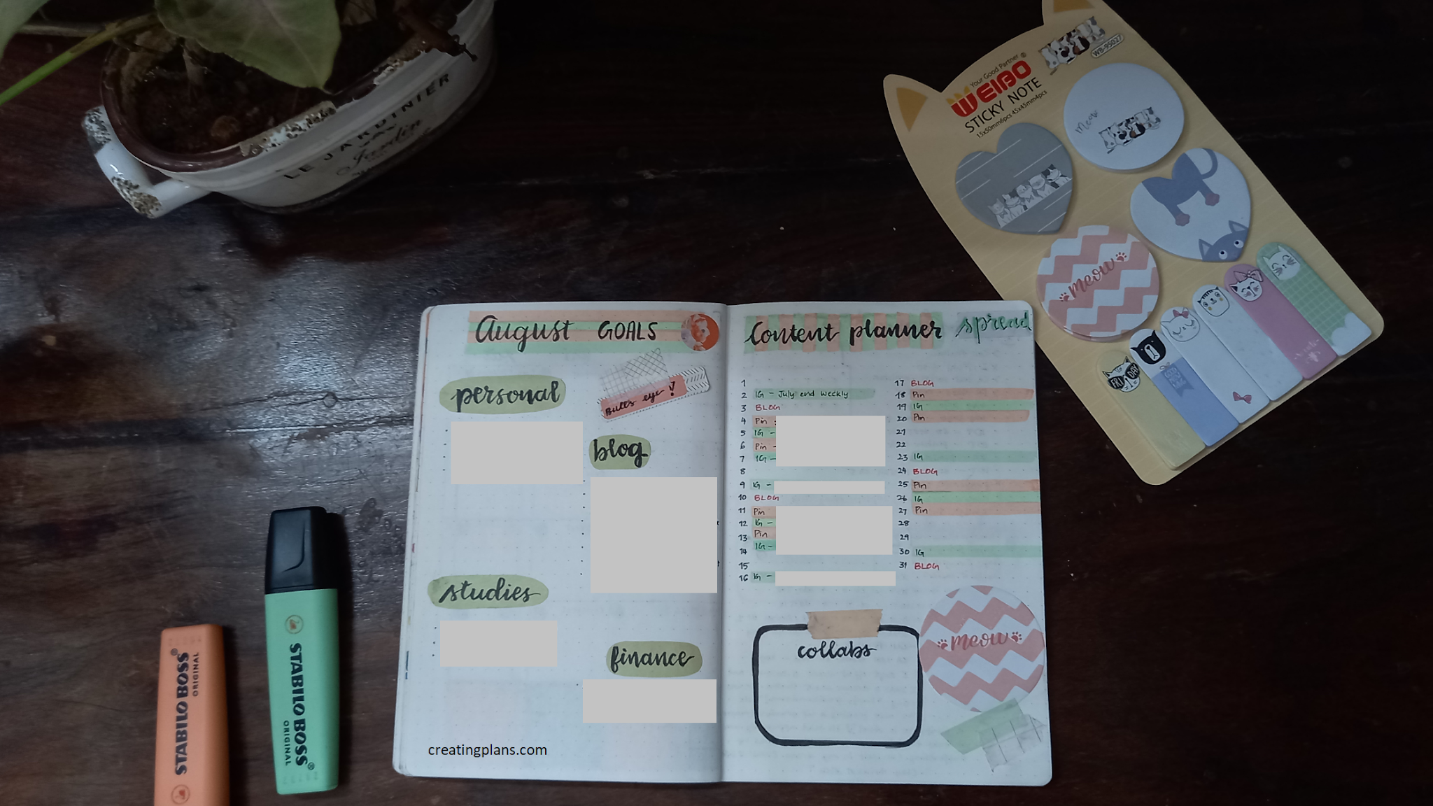 I usually make a content planner when I feel my schedule is all over the place and I need to have a fixed routine for my blog and social media. I definitely need to up my consistency game, which is why this spread is here.