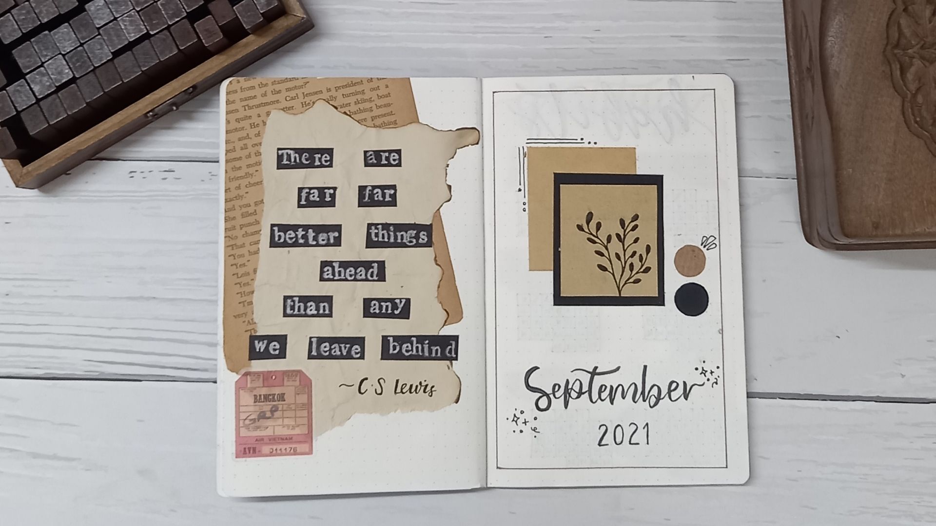 | Vintage themed monthly spread for bullet journaling |